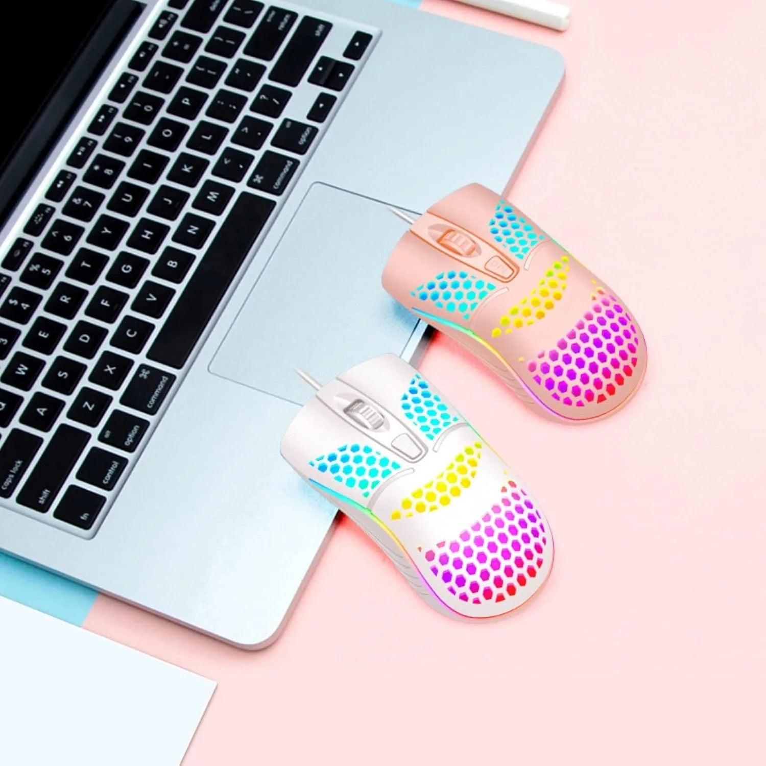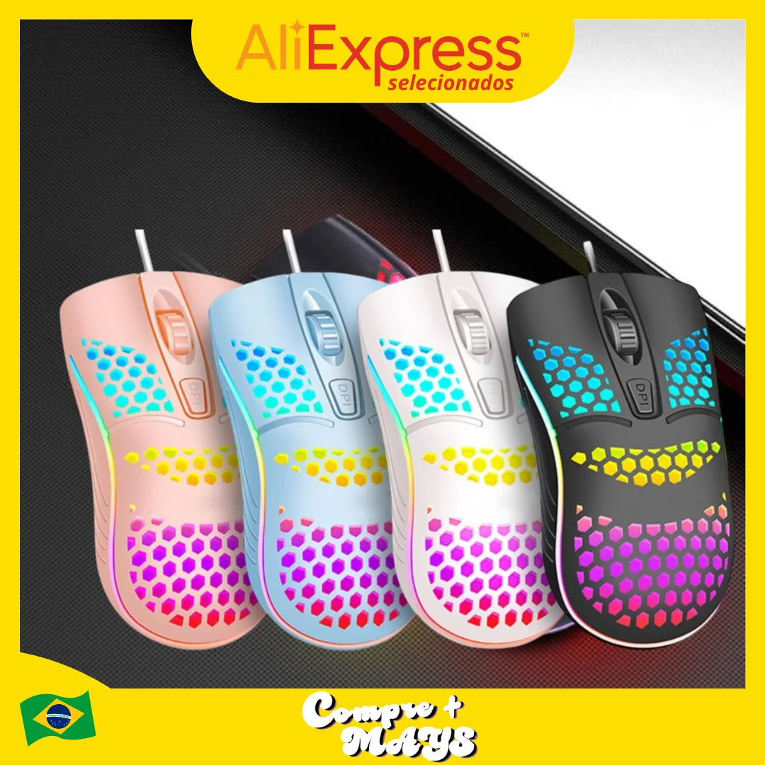 Mouse óptico gamer RGB LED com fio USB de alta precisão para jogos, iluminação personalizável, design ergonômico durável